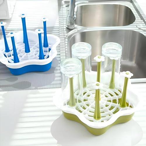 Generic - رف مطبخ متعدد الاستخدامات بنمط زهرة البرقوق للتخزين الفعال والتجفيف السريع لأكواب المياه والأواني الزجاجية (قطعتان)