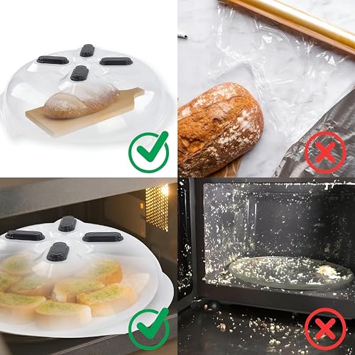 - يمنع الرذاذ ويحافظ على الميكروويف الخاص بك خاليًا من البقع عن طريق احتواء انسكاب الطعام أثناء التسخين، مع حماية الأطباق من الغبار والحشرات خارج الفرن.