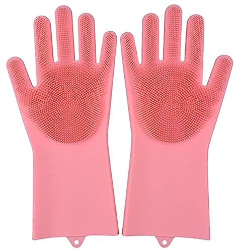 generic - جوانتي سيليكون للمطبخ، جوانتي سحري لتنظيف المواعين بفرشاة تنظيف مطاطية سهلة الاستخدام، موديل Glovesco4127
