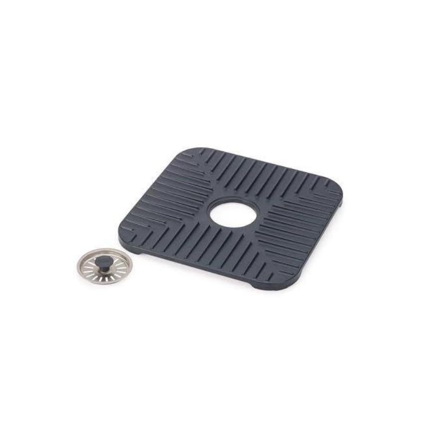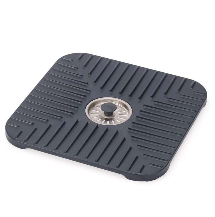 Generic - بساط حوض المطبخ مع فتحة تصريف، بساط تجفيف الأطباق من السيليكون بلون رمادي، سطح بملمس بارز غير قابل للانزلاق
