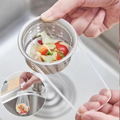 - محتويات العبوة: مجموعة من 50 كيس مصفاة شبكية للاستعمال مرة واحدة مصممة خصيصًا لمصارف حوض المطبخ لجمع فضلات الطعام ومنع الانسداد