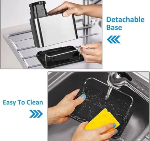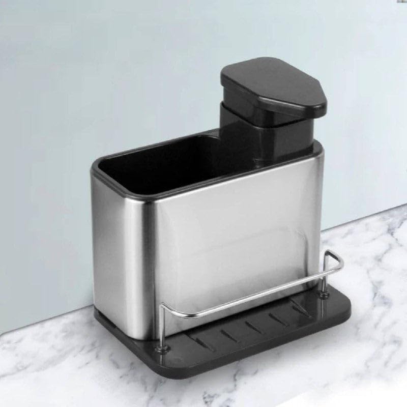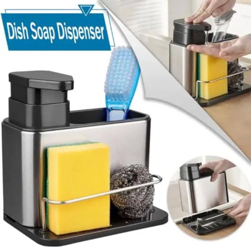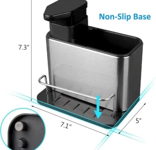 Generic - منظم حوض المطبخ مع موزع صابون، قاعدة قابلة للفصل، تصميم مانع للانزلاق، 7.3 × 7.1 × 5 انش، ستانلس ستيل