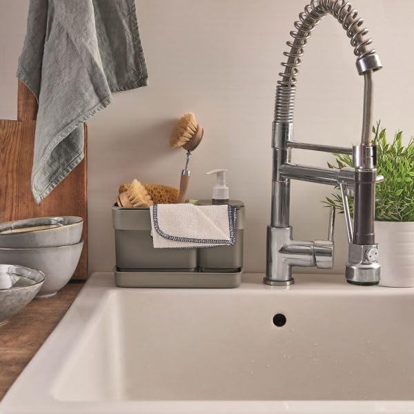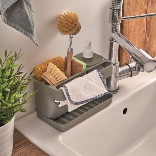 Generic - منظم حوض المطبخ مع موزع صابون، حامل إسفنجة وتخزين فرشاة، رمادي