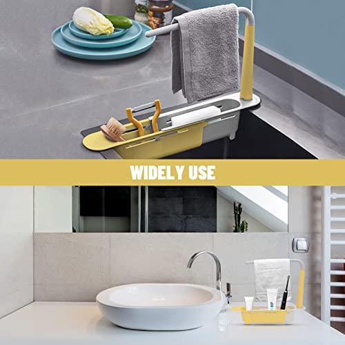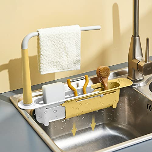 plplaaobo - منظم حوض المطبخ، حامل صينية قابل للتوسيع مع رف خرقة، منظم حوض قابل للتوسيع من البولي بروبيلين بسعة كبيرة للحوض (اصفر)، متعدد