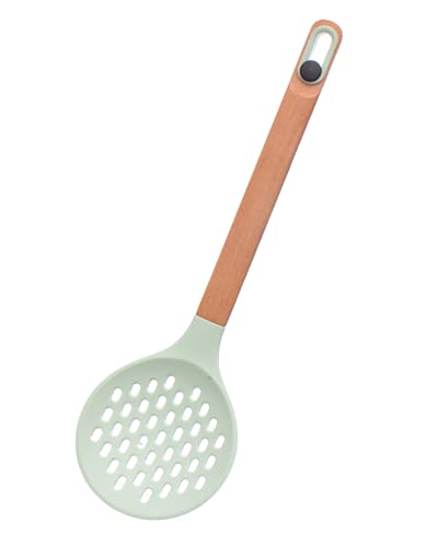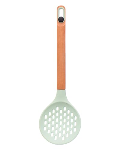 Generic - ملعقة مقشدة للمطبخ بمقبض خشبي، اخضر نعناعي، راس نايلون مثقوب