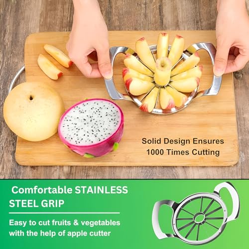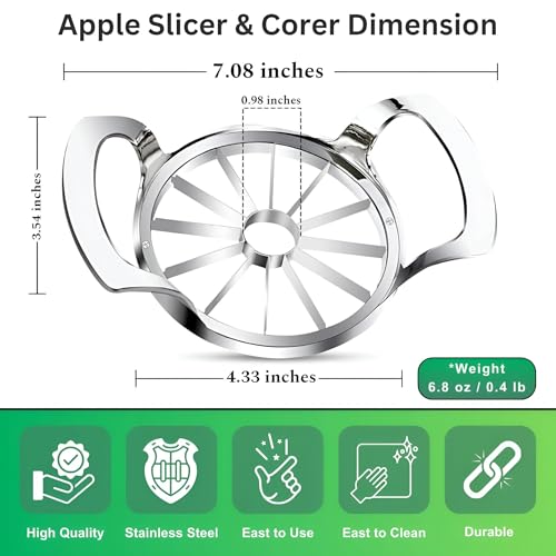 - ✅تقطيع بدون مجهود: قل وداعًا لمشاكل تقطيع وحفر التفاح! تتميز قطاعة التفاح المصنوعة من الستانلس ستيل من تايدي هوم بقرص مدمج و12 شفرة حادة لتقطيع الفواكه المفضلة لديك دون عناء. احصل على 12 قطعة موحدة بحركة واحدة سلسة. لا تتعامل هذه القطاعة القوية ذات الحجم الكبير مع التفاح فحسب، بل تتعامل مع الفواكه المستديرة الأخرى أيضًا. قطرها 4.33 انش يجعلها مثالية للفواكه الأكبر حجمًا