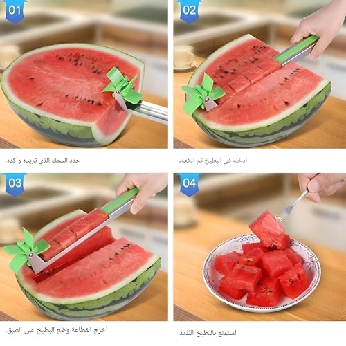 - قطاعة البطيخ مصنوعة من الستانلس ستيل عالي الجودة وتتميز بتصميم طاحونة هوائية فريد، مما يجعلها ليست فقط أداة مطبخ عملية ولكن أيضًا إضافة ممتعة من الناحية الجمالية لمطبخك. يسمح هذا التصميم المبتكر بتقطيع البطيخ بسهولة مع الحفاظ على مظهره الجميل، مما يضمن لك الاستمتاع بالفواكه دون التنازل عن الأناقة.