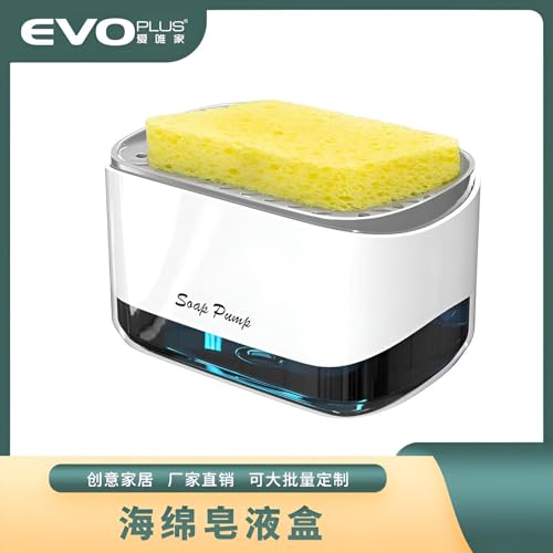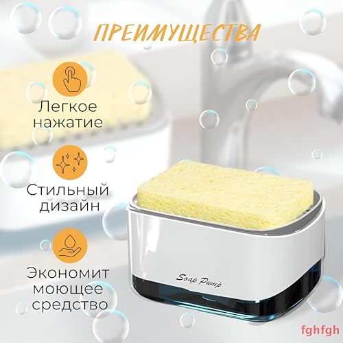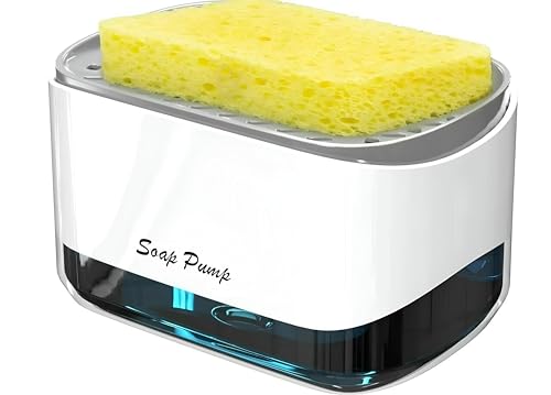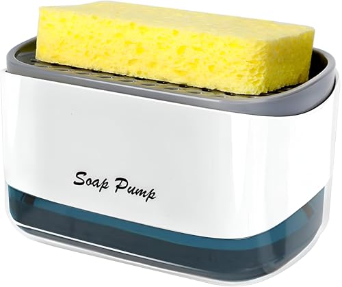 Daga - موزع صابون للمطبخ، وحدة متعددة الاستخدامات 2 ×1 مع حامل إسفنجة مدمج، يبسط تجربة غسل الصحون بدون مجهود - سعة 350 مل