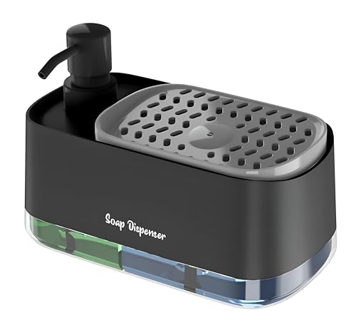 Generic - منظم وموزع صابون للمطبخ - مجموعة موزع صابون مزدوج الاستخدام مع حامل اسفنجة مدمج، مثالي للتخزين المبسط على الحمام او طاولات المطبخ، تصميم انيق وعملي (اسود)