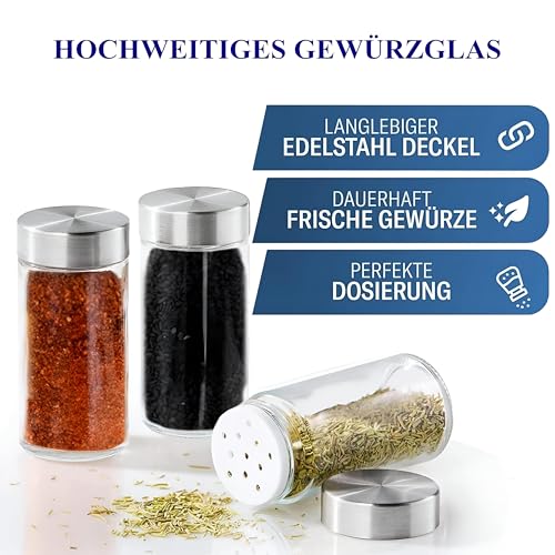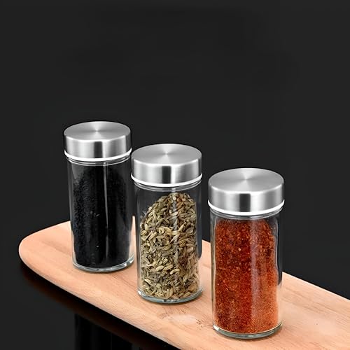 - مزودة بأغطية أنيقة من الفولاذ المقاوم للصدأ تتضمن فتحة دائرية، تسهل هذه البرطمانات توزيع التوابل بشكل سريع ومتساوي، مما يجعل التتبيل الدقيق سهلًا ويعزز النتائج الطهوية.
