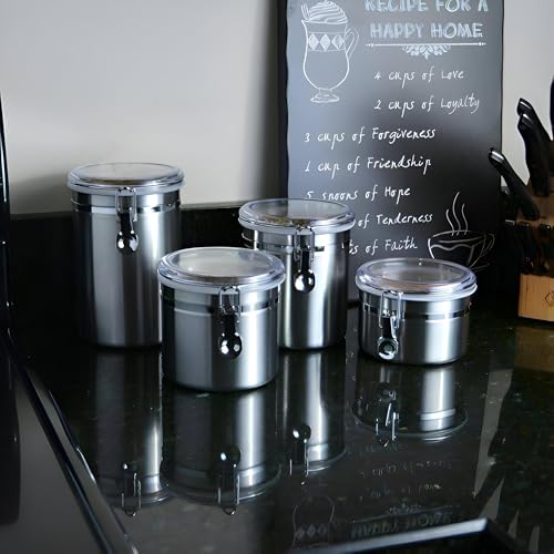 Generic - حاويات توابل للمطبخ - طقم من 4 قطع من الستانلس ستيل مع اغطية باحجام متعددة للتوابل والبقوليات، 22 سم، 18 سم، 15 سم، 13 سم، ستيل 304 عالي الجودة