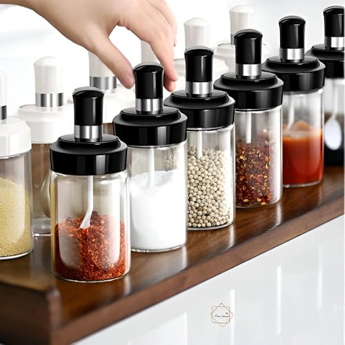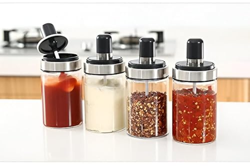 Generic - برطمان توابل للمطبخ بزجاج متين مع ملعقة للملح والتوابل والعسل والسكر والسمن مثالي للطهاة والخبازين في المنزل