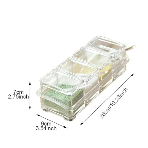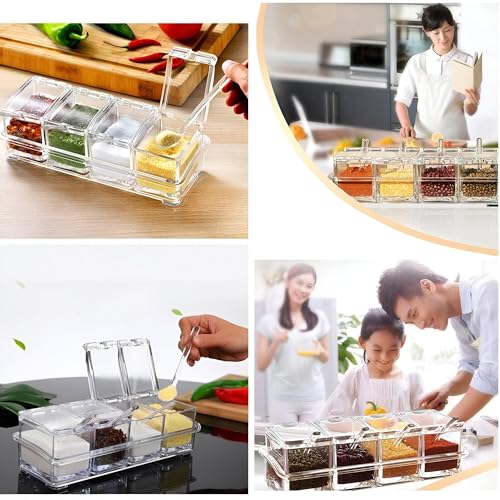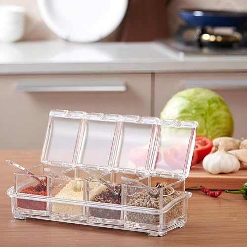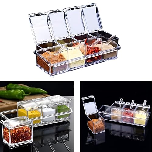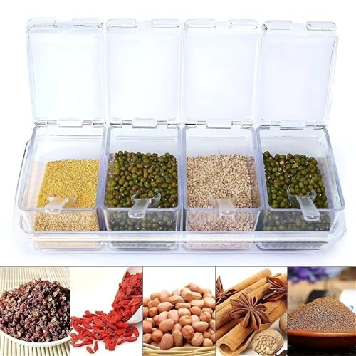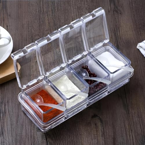 Generic - مجموعة توابل المطبخ - وعاء توابل اكريليك شفاف بـ 4 أقسام مع غطاء وملعقة، هو الخيار المناسب لتنظيم توابلك بشكل أنيق وتحسين متعة الطهي