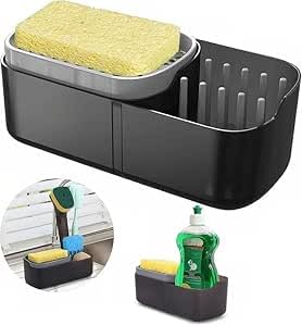 Generic - "حامل إسفنجة ومنظم أدوات التنظيف للمطبخ مع صينية تصريف مدمجة – تصميم أنيق لتخزين سائل الجلي، الفرش والإسفنج، مثالي للحوض وتوفير المساحة"