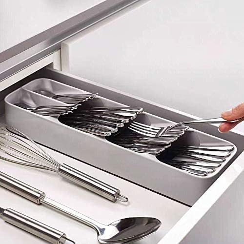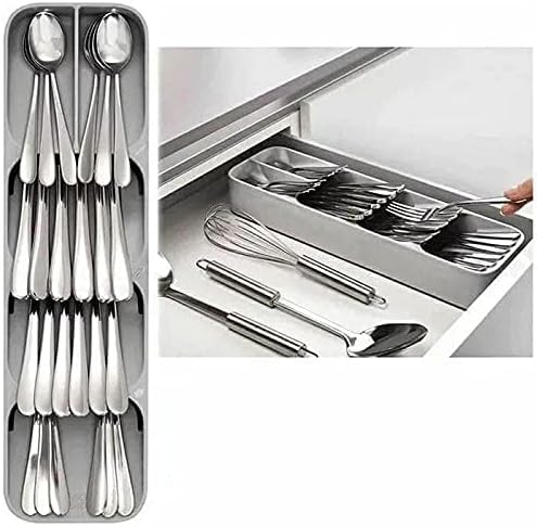 Generic - منظم ملاعق وأدوات المطبخ، علامة غير تجارية، بتصميم عصري، لون فضي، مصنوع من البلاستيك، مدمج في الدرج، قطعة واحدة