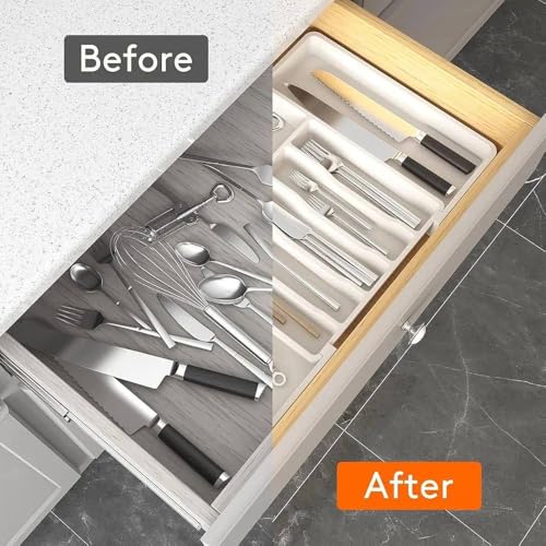 Generic - منظم درج معالق المطبخ، منظم درج لتوفير مساحة التخزين، منظم قابل للتوسيع 8 خانات لتنظيم جميع ادوات المطبخ