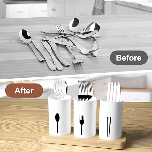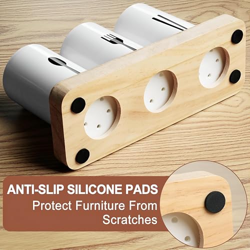 - تصميم ثلاثي الأجزاء مع صينية خشبية قابلة للإزالة يجعل من السهل تنظيم الملاعق والشوك وعيدان الطعام بشكل منفصل مع توفير الثبات والنقل السهل بين مساحات المطبخ.