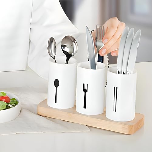 - مظهر بسيط متعدد الوظائف مع أيقونات أواني منقوشة - يمكن تخزين أدوات المائدة ليس فقط ولكن أيضًا القرطاسية أو أدوات المكياج أو الفرش، مما يضيف النظام والأناقة إلى أي مساحة.