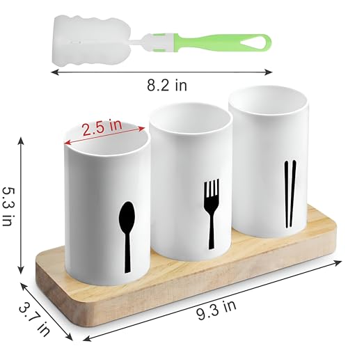 Generic - قاعدة معالق ثلاثية مدمجة مصنوعة من البلاستيك المتين، تكملها قاعدة خشبية طبيعية وفرشاة تنظيف، تمزج بين التصميم الجميل والعملية اليومية
