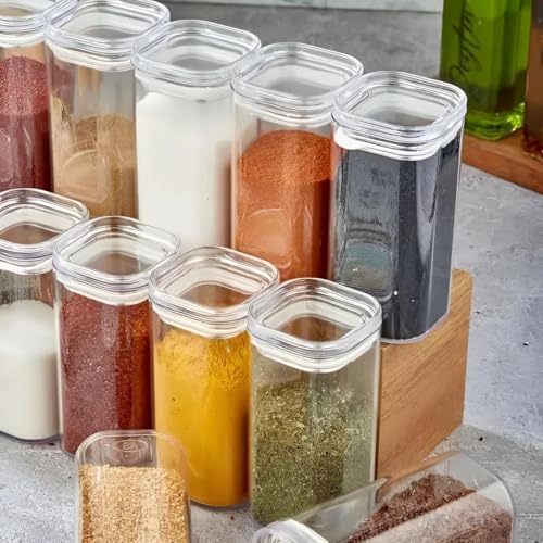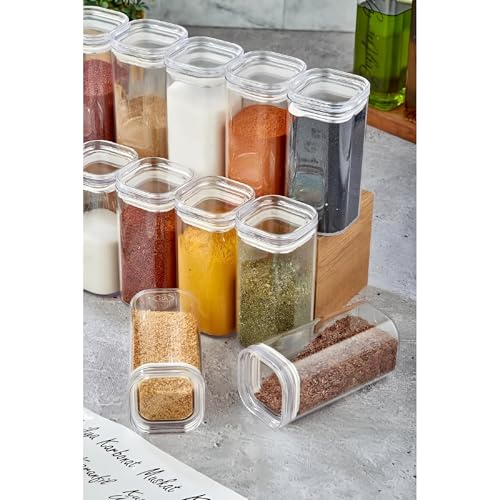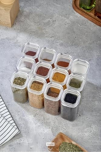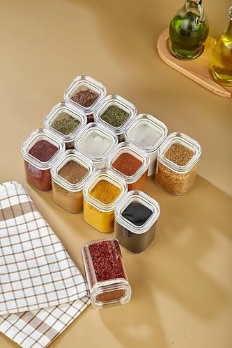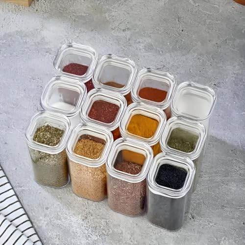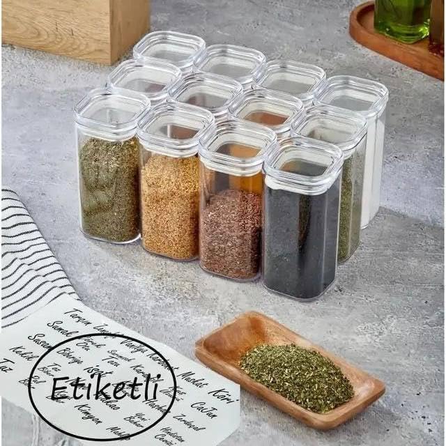- تحتوي هذه المجموعة على 12 برطمان توابل من الأكريليك، كل منها بسعة 250 مل، مما يوفر مساحة واسعة لتخزين مجموعة متنوعة من التوابل والأعشاب والتوابل، مما يجعلها إضافة أساسية لأي مطبخ.