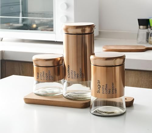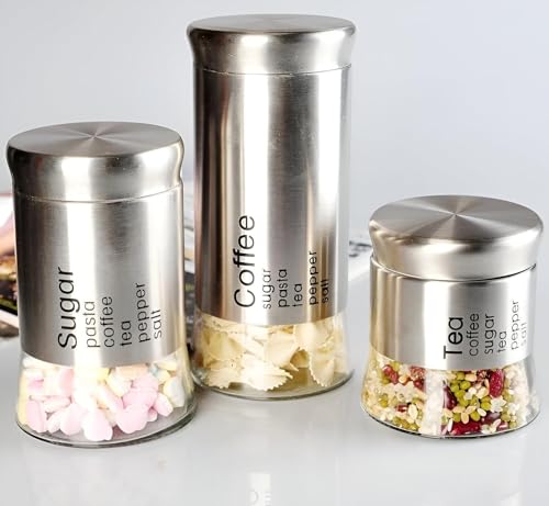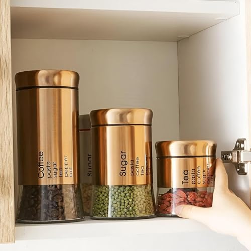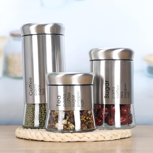 Generic - حاويات تخزين للمطبخ - مجموعة برطمانات توابل وقهوة عصرية من 3 قطع بسعة 450 مل و700 مل و1000 مل، سدادات من الفولاذ المقاوم للصدأ مانعة للتسرب، مثالية لتنظيم التوابل والفاصوليا والأطعمة الجافة
