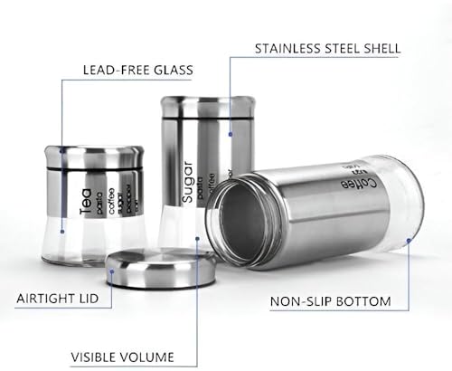 - هيكل البرطمان مصنوع من زجاج عالي الجودة وخالي من الرصاص والفولاذ المقاوم للصدأ، يجمع بين المتانة والجاذبية الجمالية. الزجاج غير سام وآمن لتخزين الطعام، ومعزز بصريًا بطباعة حروف سوداء رائعة للحصول على مظهر أنيق.