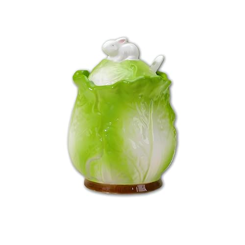 Generic - برطمان تخزين للمطبخ - سكرية سيراميك على شكل ملفوف مع غطاء وملعقة لتنظيم التوابل أو البهارات أو الحلويات (1 قطعة)
