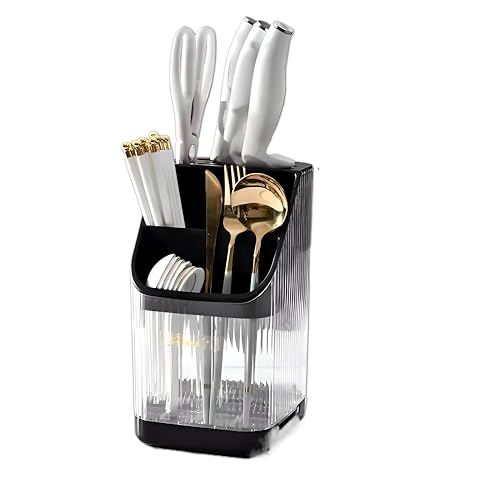 - تم تصميم الحامل بفتحات تهوية خاصة، مما يضمن بقاء الأدوات جافة وصحية. يحمي هذا التصميم أدواتك من الرطوبة الزائدة، مما يعني أنك ستقلل من خطر تراكم العفن أو البكتيريا. هذه الميزة ضرورية للحفاظ على صحة عائلتك وضمان بقاء الأدوات المستخدمة لإعداد الطعام آمنة ونظيفة. لذا، لا داعي للقلق بشأن تراكم الرطوبة في مطبخك.