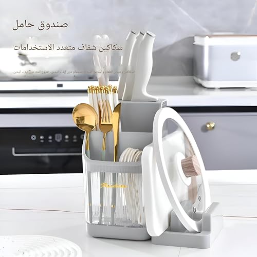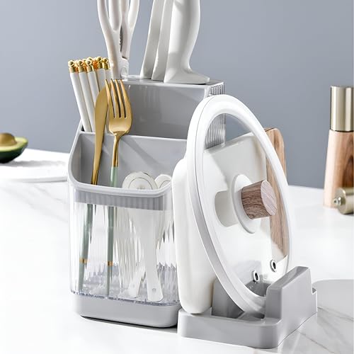 - يتميز حامل الأواني بتصميم متعدد الوظائف، لأنه مصمم خصيصًا للحفاظ على جميع أدوات الطبخ الأساسية في مكان واحد. يمكنك تخزين عيدان الطعام وألواح التقطيع والسكاكين وأغطية الأواني بطريقة منظمة. وهذا يعزز كفاءة العمل داخل المطبخ، مما يساهم في تسريع عملية الطهي. بالإضافة إلى ذلك، يتيح لك هذا التصميم الذكي الوصول بسهولة وسرعة إلى مستلزماتك أثناء الطهي.