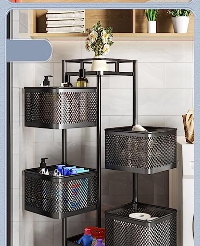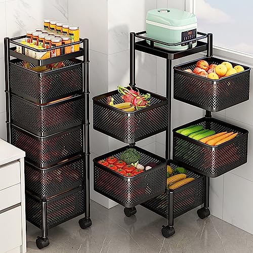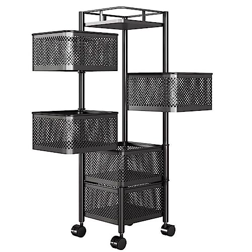 Generic - رف تخزين للمطبخ، رف وسلة تخزين دوار للفواكه والخضروات، أرفف عربة دوارة مزودة بعجلات، منظم تخزين منزلي للمطبخ والحمام وغرفة المعيشة (سلة مربعة من 5 طبقات)