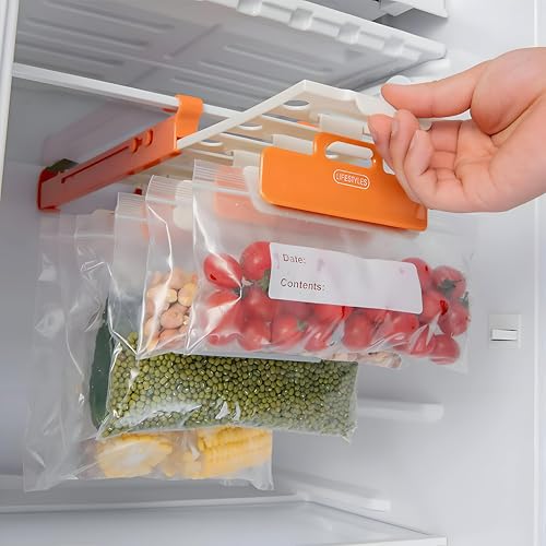 Generic - تخزين المطبخ - رف اكياس بسحاب للثلاجات والفريزر، اطار قابل للطي من الستانلس ستيل مع خطافات قابلة للتعديل، يحافظ على الشنط محكمة الغلق ومنظمة، ويوفر المساحة ويبسط إعداد الوجبات.