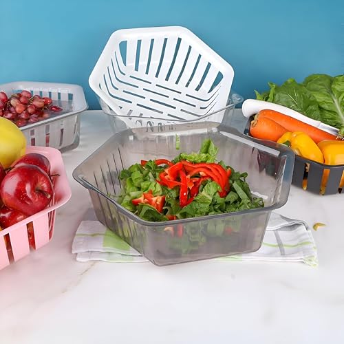 Generic - مصفاة مطبخ - مجموعة مصافي أكريليك أنيقة مع علبة شفافة للخضروات والفواكه، قطعة مزدوجة 2×1 للتنظيم والتصفية بسهولة