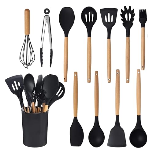 - مجموعة أدوات المطبخ المصنوعة من السيليكون مكونة من 12 قطعة مصممة لتلبية جميع احتياجات الطهي، بما في ذلك الملاعق والملاعق والمغرفة والملاقط والخفاقة والحامل لتوفير الراحة الكاملة.