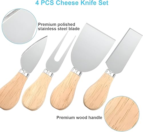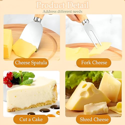 - المظهر الجذاب لهذه المجموعة لا يجعلها أداة مطبخ عملية فحسب، بل أيضًا خيار هدية مدروس. مثالية للمضيفين أو المتزوجين حديثًا أو أي شخص يستمتع بالترفيه في المنزل. عملية للوجبات العائلية اليومية وأنيقة بما يكفي للتجمعات الاحتفالية، تضيف هذه المجموعة لمسة من الرقي إلى أي لوح جبن، مما يحولها إلى قطعة مركزية تستحق الإعجاب والمشاركة مع الضيوف.