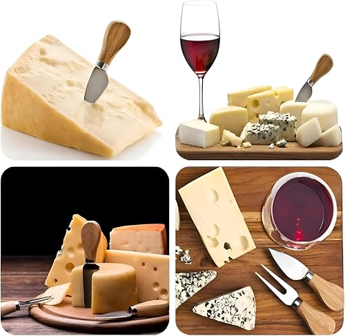 Generic - اداة مطبخ - مجموعة سكاكين جبن فاخرة من الستانلس ستيل بمقابض خشبية، مثالية لتقطيع البيتزا والزبدة والحلويات والسلطات الطازجة المتنوعة بنمط انيق