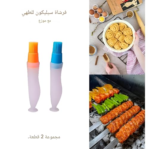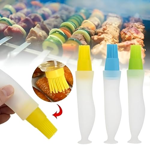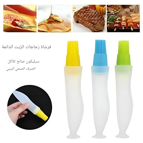 Generic - اداة مطبخ - مجموعة فرش زيت من السيليكون مكونة من 3 قطع تتميز بخزانات قابلة لاعادة الملء وشعيرات امنة غير لاصقة وقبضة مريحة وتطبيق دقيق للزيت للطبخ والتتبيل والتوابل بالوان متعددة