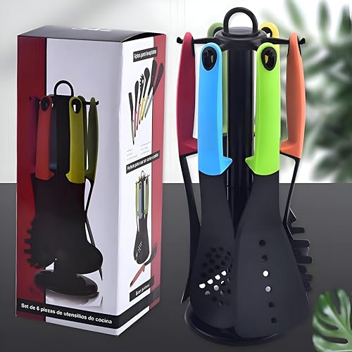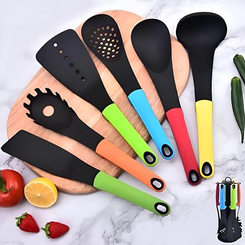Generic - مجموعة توزيع مكونة من 7 قطع تتميز بحامل سيليكون مقاوم للحرارة ومقابض مريحة غير موصلة للحرارة بنمط عصري لحلول الطبخ الذكية