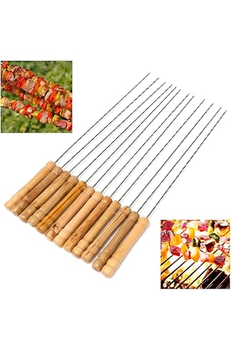 Generic - أدوات مطبخ، أسياخ من الفولاذ المقاوم للصدأ مع مقابض خشب للشواء الآمن مثالية للتخييم في الهواء الطلق، ملحقات موقد النار لرفع مستوى الطبخ