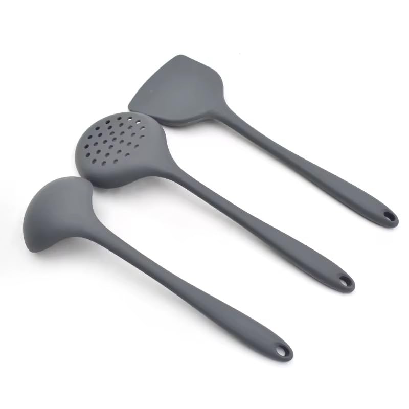 - الخامة: هيكل متين من السيليكون الآمن في المطبخ مع لمسة نهائية رمادية غير لامعة، وهي مثالية لأواني الطهي غير اللاصقة، تتميز بسطح مقاوم للالتصاق ومرونة عالية، كما هو معتاد في ملعقات السيليكون، ما يجعلها آمنة تمامًا للاستخدام مع الأواني المطلية. سيليكون مقاوم للحرارة يبدو أن الملعقة مصنوعة من مادة مرنة وغير قابلة للخدش ومقاومة للحرارة، على الأرجح سيليكون أو بلاستيك مشابه عالي الجودة. وهذا يجعلها آمنة للاستخدام مع أواني الطهي غير اللاصقة دون إتلاف الأسطح.