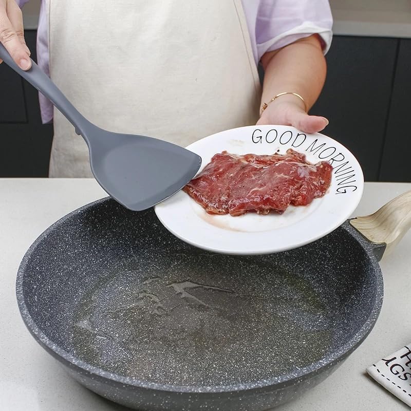 Generic - ملعقة مسطحة لتقليب الطعام، بطول 37.5 سم، رمادي، امنة ومقاومة للالتصاق