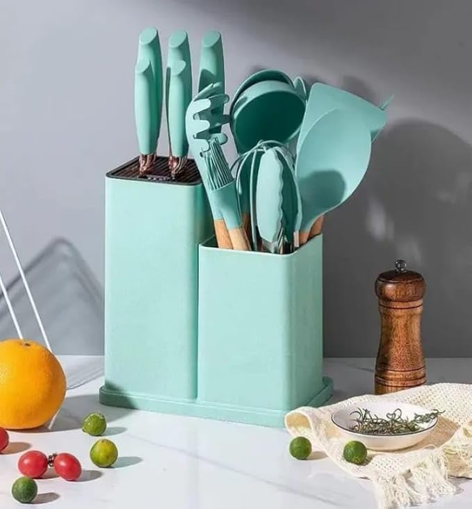- الحل الكامل للمطبخ – وداعًا للأدوات غير المتناسقة. هذا الطقم المكون من 19 قطعة يزودك بالأدوات والسكاكين لكل مهمة طهي، موفرًا الوقت والجهد.