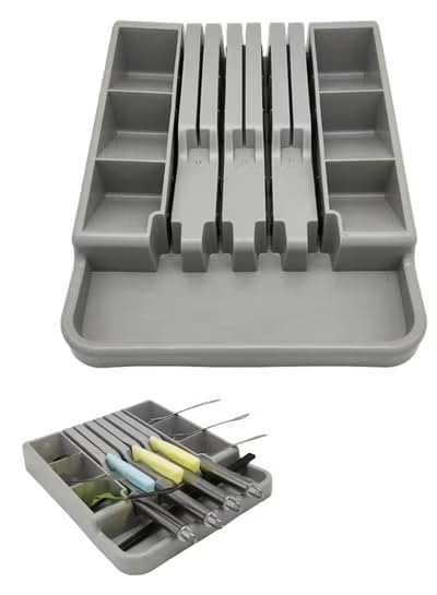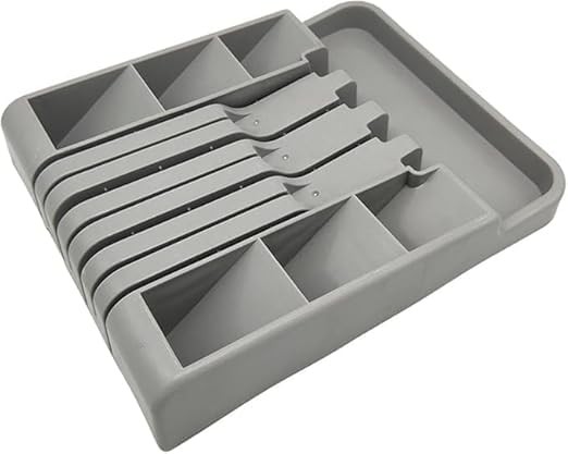 - 🍴 تخزين متعدد الوظائف - ليس فقط للسكاكين! قومي بتنظيم الشوك، والمعالق، والأدوات الأخرى بسهولة باستخدام مساحات التخزين الذكية للحصول على ترتيب كامل للدرج.