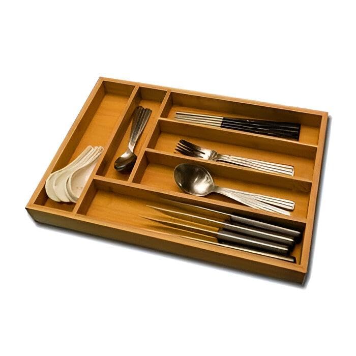 - لا يقتصر هذا المنظم على أدوات المائدة فقط، بل يمكن استخدام صينية الخيزران متعددة الاستخدامات كرف لتخزين مختلف أدوات وأدوات المطبخ، ما يوفر حلاً مبتكرًا وموفّرًا للمساحة لتنظيم الأدراج والحفاظ على الأساسيات في متناول اليد. يمنحها تصميمها القابل للتكيّف إمكانية الاستخدام في جميع الأدراج ذات الحجم القياسي، مما يوفر حل تخزين مخصصًا لأي مطبخ.