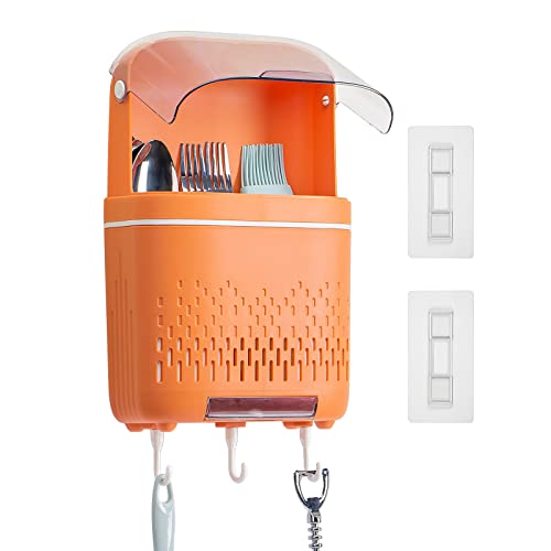 generic - حامل ادوات المطبخ، رف ادوات المطبخ يثبت على الحائط، منظم متعدد الاستخدامات قابل للفصل مع غطاء مقاوم للغبار، حامل ادوات تناول الطعام، مناسب للمطبخ والحمام والمرآب واكثر من ذلك، برتقالي