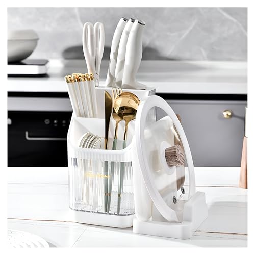 Generic - منظم أدوات المطبخ - حامل بلاستيكي كبير بثلاثة أقسام لتخزين أدوات الطهي والفضيات، تصميم أبيض عصري يوفر تنظيمًا ذكيًا للمطبخ الحديث