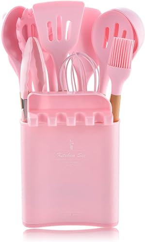 Generic - أدوات توزيع سيليكون بمقابض خشب، معالق وملعقة سباتولا ومضرب لأواني الطهي غير اللاصقة، أدوات مقاومة للحرارة، طقم من 13 قطعة (لون أسود) (ألوان متنوعة)