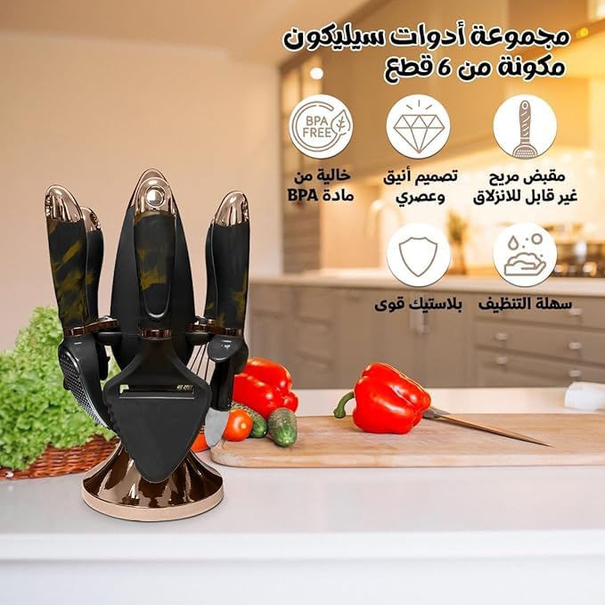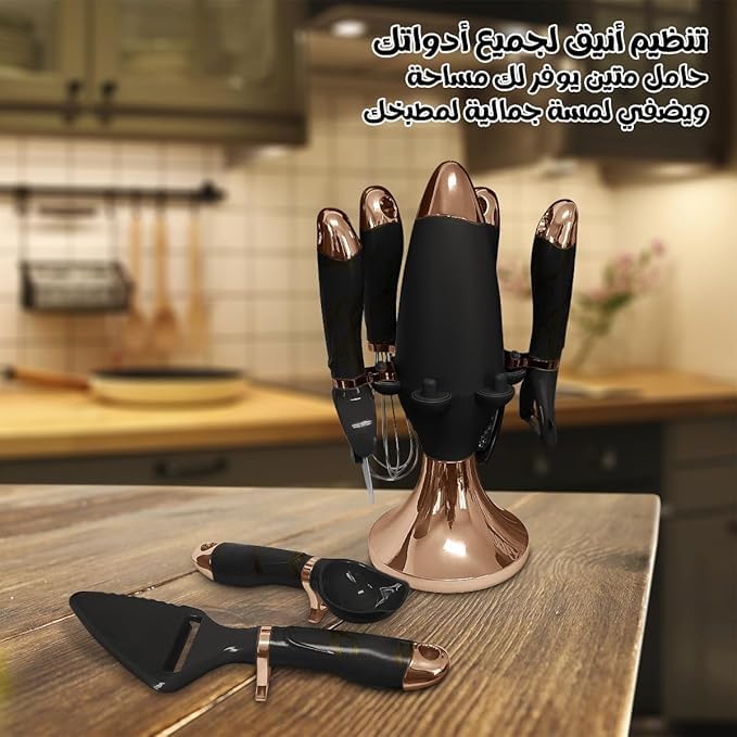 - حامل موفر للمساحة - يأتي مع حامل أدوات طهي مريح للحفاظ على مطبخك منظمًا والوصول بسهولة إلى الأدوات.