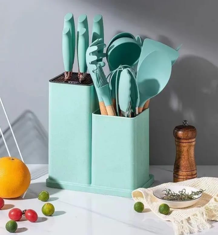 - حامل تخزين مريح: يأتي طقم أدوات المطبخ مع حامل أنيق للحفاظ على أدواتك منظمة ويسهل الوصول إليها، مما يقلل من الفوضى في مطبخك.
