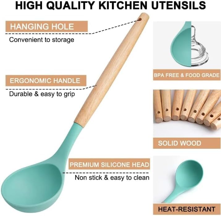 - مقاوم للالتصاق ومقاوم للحرارة: طقم أدوات مطبخ آمن للاستخدام مع أواني الطهي مقاوم للالتصاق ويمكنه تحمل الحرارة العالية، مما يضمن بقاء أدوات المطبخ في حالة جيدة.