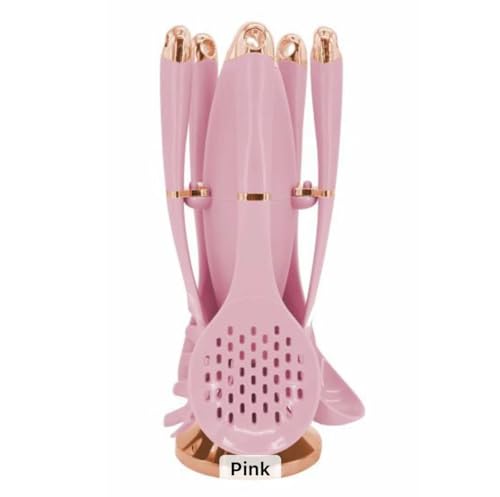 Generic - طقم أدوات مطبخ من السيليكون مكون من 6 قطع (5 قطع + حامل)، لون وردي